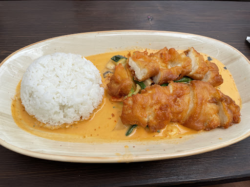 Die Bestellung erfolgt im Restaurant und das Essen wir an dem Tisch gebracht. Meine Wahl ist auf das rote Curry mit gebackenen Hühnchen für 7,20€ gefallen. Das Gericht war sehr lecker, aber die Portion war leider überschaubar. Mehr Gemüse wäre wünschenswert gewesen.