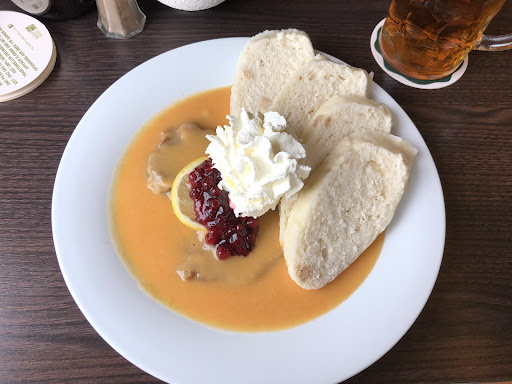 Wir hatten reserviert und haben einen schönen Tisch zugewiesen bekommen. Wir wurden sehr zügig und sehr freundlich bedient. Es gibt tschechisches Bier und Schnäpse, sowie div. alkoholfreie Getränke. Die Karte ist groß und ausreichend, es gibt trationelle und moderne tschechische Küche, kleine Gerichte, Suppe, Hauptspeisen, Fisch und Dessert. Die Karte kann komplett auf der Website angeschaut werden. Wir hatten Knoblauchsuppe, Schnitzel mit Pilzsoße und Böhmischen Knödeln und Rinderbraten auf Sahnesoße mit Böhmischen Knödeln. Die Portionen waren sehr groß, schön heiß und appetitlich angerichtet. Es war absolut lecker, ich wüsste nichts auszusetzen. Die Knoblauchsuppe war richtig gut, mal was ganz anderes, die Kompi aus Brühe mit Fleisch, Käse und frischem Knoblauch kannte ich so noch nicht. Der Braten war zart und weich, die Sahnesoße sehr lecker, die Knödeln perfekt. Das Schnitzel war riesig, das Fleisch etwas dicker und die Pilzsoße einfach genial. Die Preise sind absolut fair, das Preisleistungsverhältnis stimmt. Top 5 Sterne, tschechische Küche mal was anderes,...
