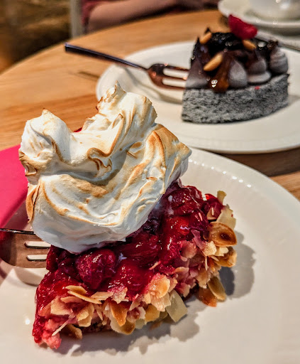 Das Ambiente ist sehr entspannt und gemütlich gehalten, Klavier definitiv ein Plus und die Preise der Innenstadt und der Einrichtung entsprechend. Die Torten und Teilchen sind optisch hervorragend, geschmacklich aber durch die prominente Optik zwar gut aber ohne das gewisse Etwas. Macarons würde ich persönlich nicht empfehlen. Getränke sind okay und eine Auswahl ist da.
