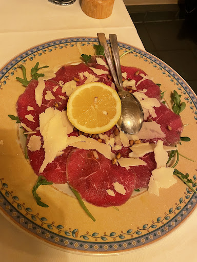 Nun zum Essen: Unser Kellner, ich glaube es war der Inhaber, empfahl uns eine Vorspeisenplatte. Diese war phänomenal. Zur Hauptspeise hatten wir Pasta, Pizza und ein Gericht von der Tageskarte. Ich habe alle 6 Gerichte probiert und alle waren wirklich super super lecker. Frisch und von höchster Qualität. Dazu haben wir 2 Flaschen Primitivo getrunken. Auch dieser war top. Dann kamen die Nachspeisen und was soll ich sagen - Ich hätte mich in das Schokoladentarte reinlegen können. Auch das Panna Cotta war sensationell. Danach gab's noch eine Runde Grappa aufs Haus.