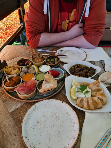 Read moreLokalität in Ordnung, Sauberkeit vorhanden und das Essen ist, zumindest bei den Tapas, die wir zu viert hatten, auch absolut in Ordnung und lecker. Aioli war ein Träumchen, manche Soßen/Dips sehr dünn. Absolute Enttäuschung war die Käse/Schinken-Platte, die um Welten zu teuer für das Gebotene war. Ebenso sind manche Tapas preislich in der gleichen Kategorie einzuordnen. Wer nun denkt, man könne da den Abend verbringen und spanisches Essen und Trinken genießen, liegt nur dann richtig, wenn man keine 2h benötigt vom Betreten bis zum Gehen. Das ein Tisch für vier Personen nach 2h für eine andere Gruppe reserviert wird, kann vorkommen. Was allerdings dann gerade nicht passieren sollte, wäre zum Beispiel die Wartezeit bis zur ersten Bestellung von ca 20min. Ebenso nicht die Dauer, bis das leere Geschirr abgeräumt und weitere Bestellungen aufgenommen werden, die ungefähr gleich lang gewesen ist. 15min vor Ablauf der 2h wurde man informiert, dass der Tisch dann benötigt wird. Das man aber zu Beginn eine ganze Flasche Wein bestellt und mehrfach erwähnt hat, dass man das Ganze eher gemächlich angehen und man Stück für Stück bestellen und verkosten möchte, war also nie relevant genug, uns auf die kurze Dauer hinzuweisen. Der Service ist zwar stets bemüht, ignorierte uns aber die meiste Zeit, rennt permanent am Tisch vorbei und wenn mal einer kommt und was bringt, hat der keine Ahnung, ob überhaupt noch was kommt oder ob das dann alles gewesen ist. Infos dazu das einer evtl später erst das Essen bekommt, weil es nach und nach zubereitet wird, gibt's also auch nicht, denn jeder macht dort irgendwas, aber gefühlt läuft alles Kreuz und quer. Einem Abräumer oder Bringer einen Hinweis zu geben, den Bestellaufnehmer zum Tisch zu schicken, kann man sich zudem auch sparen, denn das klappte gar nicht. Das diese Truppe dann natürlich auch in keinster Weise flexibel ist, kann man sich denken. Denn wie sich herausstellte, wurde lediglich ein weiterer Stuhl am Nebentisch benötigt, nicht drei wie am Anfang gedacht und man hätte den Tisch etwas umstellen müssen, dann hätten alle Platz gehabt. So hat man sich nun verdientermaßen das gesamte Trinkgeld verspielt, vier Personen zum Spanier 300m weiter getrieben und das für einen weiteren Gast. Immerhin hat man das eine vergessene Tapa auch nach entsprechender Meldung dazu von der Rechnung genommen.
