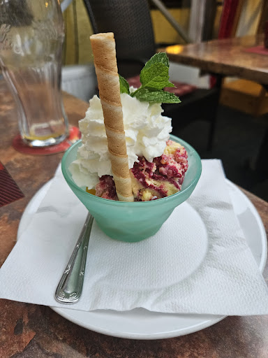 Read moreWir haben den Geburtstag meiner Mutti nachgefeiert. 11 Personen, darunter 3 Kinder und ein Baby. Angefangen haben wir mit dem Kaffeetrinken. Hier hatten wir die Wahl zwischen Eis, Kuchen, Apfel- oder Quarkstrudel mit Vanilleeis. Wir haben von allem etwas probiert und alle waren sehr zufrieden. Die Kinder durften ihren Dino-Eisbecher sogar behalten. Auch der Kaffee, Cappuccino, Latte Macchiato und der Eiskaffee sind sehr gut angekommen. Dann hieß es, die Zeit bis zum Abendessen zu überbrücken. Wir haben das schöne Wetter genutzt und waren spazieren, ein Teil der Familie hat die alkoholischen Getränke und Cocktails mit/ ohne Alkohol "getestet". Auch hier gab es eine große Auswahl und alles hat geschmeckt. Gegen 18 Uhr war es soweit, wir bestellten das Abendessen. Für die Kinder, wie soll es anders sein, Nudeln bzw Schnitzel mit Pommes - große Portion und sehr lecker. Bei den Erwachsenen war von Fisch, über Gulasch und Schnitzel alles dabei. Anrichtung sehr gut, Portion üppig, hier kann ggf eine Seniorenportion gewählt werden und der Geschmack - mhhhh, einfach lecker. Dann ging es ans Bezahlen.... Meine Mutti war erstmal etwas geschockt.... Über 400 €.... Aber die haben sich echt gelohnt und man macht das ja auch nicht jeden Tag. Abschließend ist also zu sagen,.... SEHR EMPFEHLENSWERT. Achso und nicht zu vergessen, großes Lob an den Service... Aufmerksam und...