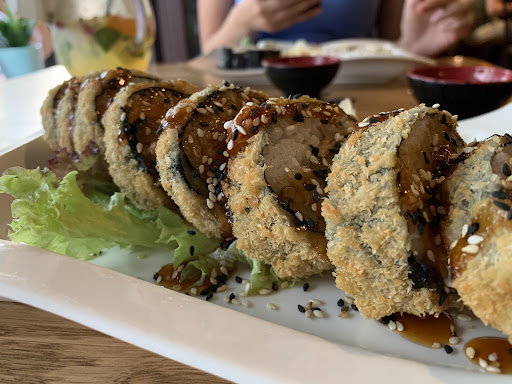 Read moreWir hatten vorher reserviert, vor Ort konnte die Reservierung leider nicht gefunden werden. Man hat einen ähnlich klingenden Namen, aber für eine Stunde später, gefunden. Dann wollte man uns an einem Durchgangsbereich, 1 Stuhl zum Geländer und ein Hocker ohne Lehne mit Rücken zum Gang "andrehen". Auf unser Drängen einen anderen Platz bekommen. Sehr beengte Verhältnisse! Der Fokus liegt hier offensichtlich auf maximale Auslastung. Erst hat es zwar gedauert bis wir eine Karte bekommen haben, einmal bestellt, waren Getränke und Essen aber sehr schnell da. Eigentlich wollte ich Rahmen bestellen, es gab aber nur eine Miso-Brühe. Wurde also sofort klar, dass es keine japanischen, sondern vermutlich vietnamesische Betreiber waren. Schade! Wir hatten dann eine sehr leckere Kokossuppe mit Hühnchen, gebackene Garnelen mit Lachs, Maki-Sushi mit Ebi Tempura und Lachs, Kokos-Erdnusssauce mit knusprigem Hühnchen. War eigentlich ganz lecker, jedoch passt die süßliche Mayonnaise-Sauce für mich nicht "auf" das Sushi. Das sollte auf der Karte erwähnt werden! Meine Begleiterin war auf der Toilette im Untergeschoss, wo wohl bahnhofsähnliche Zustände herrschten. Das passt nicht zum Preisniveau und muss dringend abgestellt werden! Das Anbiente im Hauptlokal ist sehr ansprechend. So zackig und gut wie das Essen war, so hektisch (Bedienung) und verwirrt (Reservierung) war aber auch der Service. Wir kommen trotzdem wieder. Update 11/2023: Essen, speziell Sushi, gut. Die Hektik bei Reservierung, Bestellung etc. bleibt. Wir haben zu dritt 0ber 110 Euro zzgl. Trinkgeld dagelassen, wurden aber trotzdem dreimal dran erinnert, den Tisch nach 1,5 h zu räumen: Asiatische "Effizienz" vs. Gemütliches Ausgehen. Und das ist mein Punkt: Gemütlichkeit kommt für...