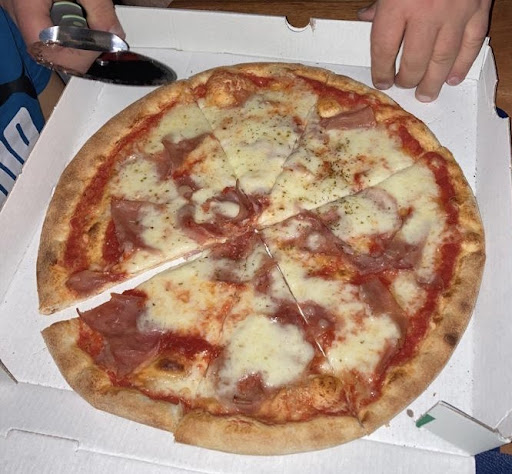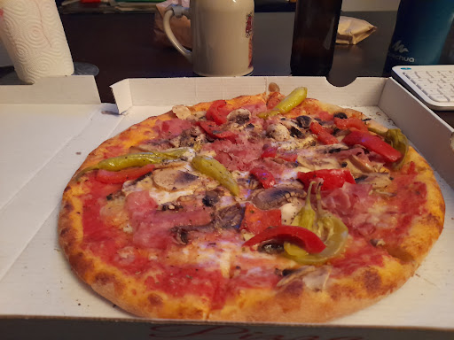 Ich bestellte eine Pizza Capriciosa. Die war innerhalb von fünf Minuten fertig. Er fertigte sie ohne Ausrollmaschine superschnell mit der Hand. Hartweizengrieß wird auch verwendet. Das Ergebnis ist eine ziemlich geile Pizza. Knusprig, lecker, groß (ca. 33cm) und die kostete nur 9,50€.