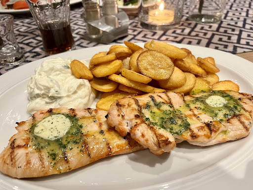 Read moreWir waren heute das erste Mal in diesem Restaurant. Wir hatten für 2 Personen einen Tisch reserviert. Am Eingang hatten wir auch geäußert, dass wir einen Tisch reserviert haben, aber hinter uns kamen gerade offensichtlich super gute Bekannte oder Gäste die mit Handschlag und Bussi begrüßt wurden und wir waren erstmal abgemeldet. Später haben wir dann noch einen Tisch draußen (sehr schönes und angenehmes Wetter heute) für 2 Personen bekommen. Die Bedienung kam relativ schnell und wir haben unsere Bestellung für die Getränke aufgegeben. Als unsere Getränke kamen haben wir allerdings gemerkt, dass wir offensichtlich andere Gäste sind als die an den Nachbartischen, denn die bekamen schon zur Begrüßung einen Ouzo. Dann haben wir das Essen bestellt, welches erstaunlich schnell kam, gut geschmeckt hat und reichlich war. Das man bei Gerichten mit Gyros keinen Tsatsiki (Zaziki) automatisch mit dabei hat, habe ich bei noch keinem Griechen erlebt. Auf Nachfrage haben wir dann einen Teller mit Tsatsiki (Zaziki) bekommen. Der ist allerdings separat zu bestellen und kostet 4,10 € was ich schon recht happig finde. Ansonsten fand ich die Preise nicht übertrieben hoch, aber das gehört einfach mit dazu und nicht als extra. Wenn einer mit der Menge Tsatsiki (Zaziki) auf seinem Teller nicht reicht und dann separat weiteren bestellen würde wäre das für mich ok, aber nicht so. Beim Abräumen der Teller wurden wir dann gefragt ob wir noch einen Ouzo haben wollen. Wir wollten. Allerdings passierte dann erst einmal wieder nichts. Beim Bezahlen haben wir dann doch noch unseren Ouzo bekommen, dass hatten wir zu diesem Zeitpunkt bereits abgehakt. Entweder waren die heute mit der Flut der Gäste überfordert oder es ist immer so. Jeder Kellner bedient mal an dem Tisch und dann wieder ein anderer Kellner. Es scheint keine feste Zuordnung zu geben, welcher Kellner für welche Tische zuständig ist. Alles in allem ein durchwachsener Abend. Wenn man eventuell neue Gäste zu Stammgästen machen möchte, sollte man auch neuen Gästen gegenüber genauso freundlich sein, wie gegenüber der Stammkundschaft. So schnell werden wir nicht mehr wieder kommen. Zum Glück ist Dresden sehr groß und es stehen genügend Alternativen zur Verfügung. Vielleicht geben wir später dem Restaurant ja nochmal eine...