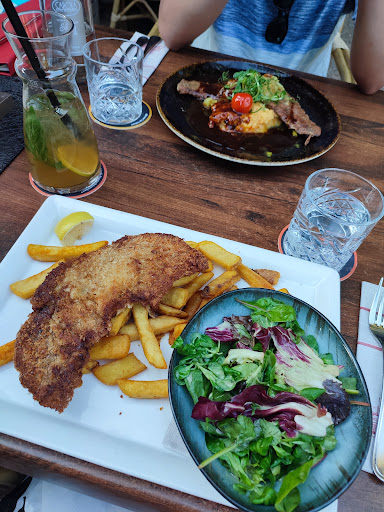 Read moreLeckeres Essen mit Bick auf den See, bei etwas gehobener Preisklasse. Ich kenne das Lokal schon mein Leben lang, im Sommer ist es hier sehr schön, man kann im Biergarten den Leuten beim rudern zuschauen oder einfach nur die tolle Aussicht auf den Carolasee genießen. Im Laufe der Jahre hat immer mal der Betreiber gewechselt, es wurde geöffnet, geschlossen und umgebaut. Wir haben nach unserem Besuch im Winter diesmal den Biergarten mit Blick auf den See getestet. Sehr netter Service, der allerdings etwas überfordert war. Das Lokal und der Biergarten wurden schön und liebevoll renoviert/hergerichtet, es hat uns sehr gut gefallen. Die Weg über das grobe Kopfsteinpflaster vor dem Lokal ist für RollatorbenutzerGehbehinderte nicht sehr schön, doch am Eingang gibt es eine Rampe über die man bequem ins Lokal kommt, im Sommer geht es Barrierefrei in den Biergarten. Im Lokal ist alles Behindertengerecht. Der Weg vom Biergarten auf die Toilette führt über eine Treppe ohne Rampe. Die Karte ist ausreichend, es gibt eine überschaubare Auswahl an Vor-, Haupt- und Nachspeisen. Die Auswahl ändert sich Saisonal. Die Gerichte sind mal was anderes und nicht das Standardfutter wie überall. Es gibt Fisch, Fleisch und auch vegetarische Speisen. Die Auswahl an Getränken ist sehr groß und für jeden was dabei. Am Ende der Karte ist auch noch sehr ausführlich die Geschichte des Lokals beschrieben von der Kiesgrube bis heute. Das Essen war diesmal leider nicht nach unseren Erwartungen oder wir haben die falsche Wahl getroffen. Wir haben uns für Portulak-Zitronenthymian-Suppe, Kalbsschnitzel und Duett von Lachs und Pulpo entschieden. Die Portionen waren gut schön angerichtet. Die Suppe war lecker und mit dem Lachs und der Garnitur einfach ein Gaumenschmauß. Das Schnitzel war eine sehr große Portion und das Fleisch war schön zart. Leider waren die Messer nicht so scharf und ein älterer Mensch hatte da mit dem schneiden sehr zu kämpfen. Die Panade war zu würzig. Der Salat war ok. Nur das Dressing in dem er getränkt war, hat nicht unseren Geschmack getroffen. Das Duett würde ich nicht wieder bestellen. Der Lachs war super. Der Tintenfisch war leider versalzen. In der Kompi mit Fetakäse, gewürztem Spinat und gewürzten Kartoffeln (Florentiener Art) hat das sehr durstig gemacht und ich musste ein Teil liegen lassen, weil mir das zu würzig war. Schade. Es werden hier auch Romantische Dinner angeboten, was ich mir beim dem Ambiente sehr gut vorstellen kann. Man kann die Räume für verschiedene Veranstaltungen buchen, es gibt ein 4 Gang Menue im Angebot und an Wochenenden und Feiertagen Brunch. Im Sommer gibt es spezielle Tage wo gegrillt wird. Die Preisklasse ist etwas gehoben doch bei der Größe und Auswahl an guten frischen Gerichten völlig in Ornung. Ab und zu muss man sich einfach mal was gönnen. Für uns war das ein schöner und angenehmer Aufenthalt. Sehr gut doch beim Essen ist noch Luft nach oben, bei den Preisen sollte hier noch etwas nachgelegt werden. Trotzdem klare Weiterempfehlung schon wegen dem schönen Blick auf den See vom schattigen...