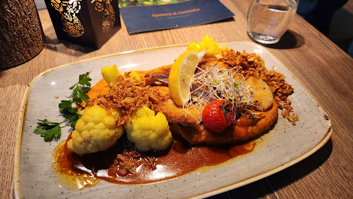 Honest review: We’ve eaten at many restaurants, restaurants with awards and 5 star hotels. This one tries to be a fancy restaurant but rather falls into the mediocre category unfortunately overall. I’ve had the paniert chicken thighs and my partner had the fish filet. The chicken was 5/10 and even though the thighs are one of the most tasty parts of a chicken this one was a little tasteless. Additionally, it was overcooked on one side and had this unpleasant “meaty” taste sometimes. The side of sweet potato fries was rather good however and it was accompanied by a basic salad without any oil. An important note is that almost all the utensils including the water glasses had a very bad odour of egg, probably due to a dirty dishwasher. Also, we did ordered a desert, crème with crumbles and plum but again it had a rather weird taste as if they put a little bit of onions inside which also lasted in the aftertaste, never experienced something like that before. The bill was 67€ and despite being in perfect location it barely misses the opportunity to be an elevated restaurant in the city of Dresden making the overall eating experience not unfortunately...