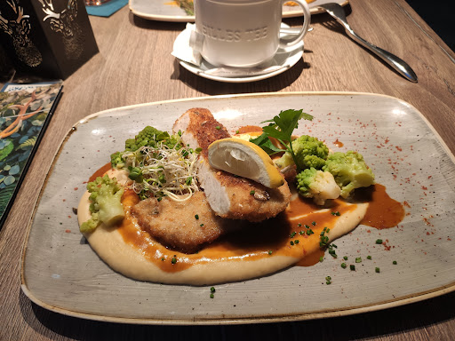 Read moreThe restaurant was nice, one might say “stylish” but that is about all the good I can say. I feel that the chef was trying too hard to make the menu “something special”. Everything on the menu had a strange twist so I ordered the beef stroganoff as the safe option, it came decomposed, with béchamel sauce, over cooked noodles ,confusing pickles and onions that still had the skin on it… I ate the steak and left the rest. The vegetables on my mother’s plate were dripping with oil and she ordered a schnitzel that came out as a cordon blue. It left us hungry, confused and unsatisfied. The service was no better. The waitress brought us our food and we never saw her (or anyone again). She did not check on our food or if we were pleased (I would have sent it back and ordered a soup or salad instead) we were not able to order anymore drinks and if we wanted to get a dessert or coffee it took her 25 minutes to ask us and by that time we just wanted to leave. All in all it was...