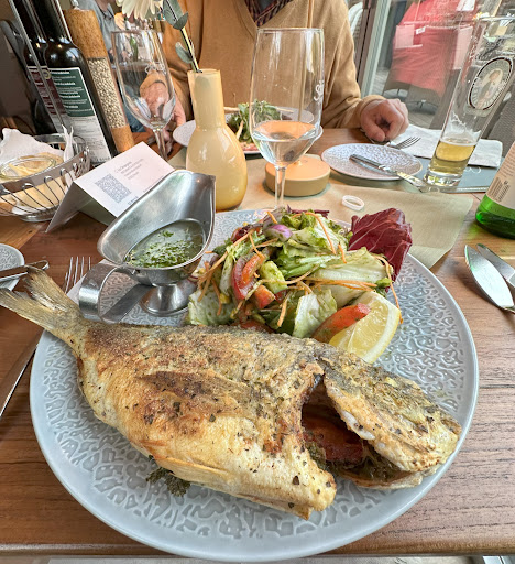 In optisch und geschmacklich ähnlich schlechter Verfassung präsentierte sich das Hauptgericht. Einen gemischten Salat, noch dazu mit einem fragwürdigen Dressing, als Beilage in einem Haufen auf den Teller zu verfrachten und dazu noch die Sauciere mit der kalten Tunke aus fadem Öl zu schieben, ist eines "Ristorante" nicht würdig. Salat und Soße gingen deshalb fast vollständig zurück an den Absender. Nur die Dorade war essbar, jedoch auch kein kulinarisches Erlebnis.