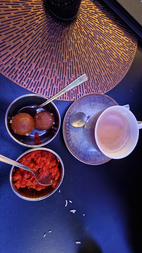 Dessert war... Leider auch nicht So doll. Das Gulab Jamun hatten wir zum Probieren und es war Eis kalt (was es meiner Freundin nach nicht sein sollte) und hat auch eher Na ja geschmeckt. Das Halwa wiederum war etwas wenig süß und hat kaum nach der roten Karotte oder anderen Gewürzen geschmeckt. Hier hatte ich schon Halwa das viel besser war.