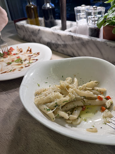 Be aware when getting a pizza here, this is what you get served. I was here on 26th of march, served by some middle east guy at about 6:30 pm. After eating two pieces, I could not do more, having taste of burned food in my mouth. I very politely took it back an apologised for bothering, but showed the pizza, when I was told that this is the pizza they served here(maybe thats the reason why there is not queue for pizza, but was there a day before and pizza was fine). I then showed how you can simply by pressing it smash it to pieces - obviously 1/3rd was burned. Then the guy angrily took it and threw it into the trash. Made another one, which was dry. I wanted to go back and throw it to his face, simply because this one person is ruining whole experience, which was always good. Also another thing was that he came to our area like 4 or 5 times to pick other peoples dishes. I have never seen in Vapiano cooks picking up food - I dont know what was his business there by doing so, also waiters told him to go back and were surprised of his business there, he simply kept coming back, leaving his place left and customers waiting. Get rid of these kind of people, you have the cameras there, simply check it, it is...