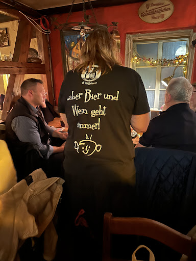 Read moreDie letzte Kaschemme? Also, nein. Eher eine Institution, ein historischer Ort, wenn es um Gastronomie geht. Urig und augenscheinlich sehr begehrt. Ich weiß nicht, wann wir das letzte Mal vor dem Öffnen angestanden haben - trotz Reservierung. Der Tisch wurde schnell und freundlich zugewiesen, die Getränke vom aufmerksamen Servicepersonal schnell aufgenommen. Das selbstgebraute Bier ist sehr empfehlenswert! Die Speisekarte ist sehr klein, was ein gutes Zeichen ist. Man sitzt in urigen Atmosphäre und darf sogar wählen, ob man im Raucher oder Nichtraucherbereich sitzen möchte. Letzteres war unsere Wahl und falls jemand Angst hat, nein, man riecht nix vom Raucherbereich. Das Essen wird frisch zubereitet (man hört, wie Schnitzelfleisch geklopft wird) und dauert entsprechend ein bisschen. Aber was man dafür erhält, ist gelinde gesagt grandios! Wir hatten Angebote aus der Tageskarte, Pilznudeln und Bulette mit Bratkartoffeln in Pilzen. Es war superlecker! Der Service war wie gesagt superflink, absolut freundlich und hatte die volle Hütte bestens im Griff. Die Preise waren dazu angemessen, wenn man heutige Maßstäbe ansetzt. Ein kleiner Minuspunkt sind die miniaturisierten und sehr abgewetzten Toiletten. Aber das ist auch dem alten Gebäude geschuldet. Gezahlt wird Bar oder mit Karte. Wir kommen sehr...