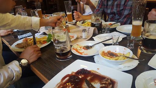 Read moreDie Gaststätte ist leider in den 1980ger Jahren stehen geblieben. Das Essen war ohne Raffinesse, Krautsalat und Zwiebeln (auch auf der Hauptspeise) gab es reichlich. Das Gyros war sehr trocken, überhaupt nicht knusprig und sah sehr zerfleddert aus. Geschmacklich war es, wie auch das übrige Fleisch aber gut gewürzt. Der Reis war etwas fad für unseren Geschmack, die Pommes halt ein übliches Gefrierprodukt aus dem Grosshandel. Hier würde man mit selbst gemachten Kartoffelspalten oder qualitativ hochwertigeren Pommes deutlich gewinnen. Saganaki und Tsatsiki waren geschmacklich sehr gut. Das Ambiente ist historisch zwar nett, hat aber gar nix griechisches an sich. Die Untere Etage hat halben Leerstand, wird als Lagerraum verwendet und wirkt ziemlich runtergerockt. Die Toiletten gehen gar nicht, Fugen sind verschimmelt und/oder verdreckt, der Frauen und Herrenbereich nur von einer Messebauwand (wie die Toilettenkabinen) getrennt. Fazit: nicht mehr zeitgemässer Grieche mit akzeptabler Küche, kann man machen aber die Wiederholungsgefahr...
