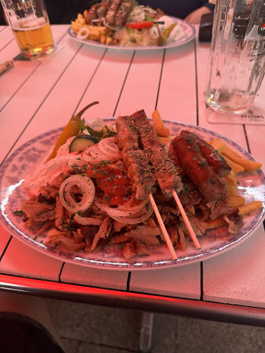 Einzig der Preis war etwas hoch, wir hatten zwei große Gyros und im Vergleich zum Preis war die Portion doch eher kleiner als erwartet. Die Beilagen haben unter dem Fleisch den meisten Platz erhalten.