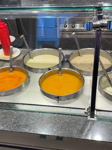 Profiterols würde ich nicht empfehlen war sehr trocken und nichts besonderes. Der Milchreis war lecker und nicht zu süß. Das Dönerfleisch war lecker. Die Preise sind eigentlich in ordnung nur wird auch beim Dönerfleisch gegeizt. Man denkt es ist viel doch das ist einfach über dem Reis gestapelt, damit es nach viel aussieht. Fasulye Portionen sind in Ordnung leider wird dann am Reis auch gespart. Eine kleine Tasse muss nich sein. Die Suppen waren auch lecker. 7-9€ für eine warme Mahlzeit gehen eigentlich in Ordnung wenn ich mir woanders Kantinenessen anschaue ist es nicht wirklich billiger von daher ebenfalls empfehlenswert