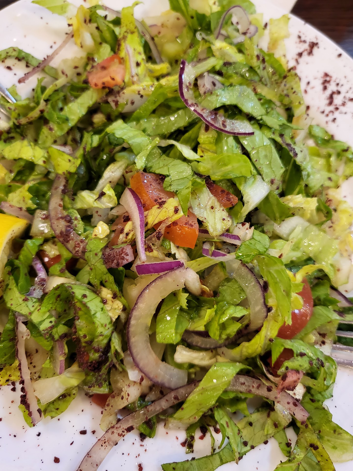 We were given bread & salad as well as part of our meal. Everything was tasty, including the sauces. Both beef & chicken were perfectly seasoned. I thoroughly...
