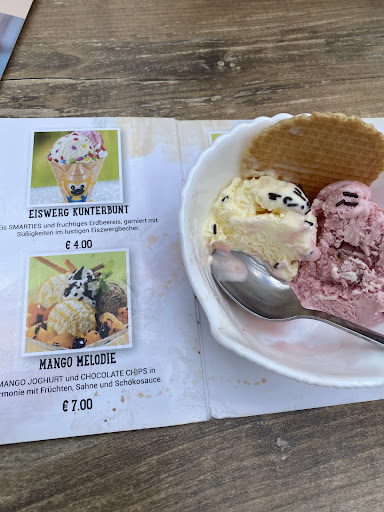 Read moreBedienung unfreundlich und lustlos, fragt, was man verzehren will, ohne die Speisekarte zu bringen. So musste er doppelt laufen 😉 Eiskarte ist sparsam, alles Supermarkteis. Erst hieß es, es gäbe keine heißen Kirschen zu unseren Waffeln, dann gab es doch welche 😮 Die Waffeln waren ziemlich klein, einen kleinen Klecks Sahne gab es aus der Sprühdose. Der Cappuccino wurde in Minitassen serviert, davon war die Hälfte Milchschaum. Geschmacklich war alles Mittelklasse. Mit dem Kassieren tat man sich äußerst schwer, zu einem anderen Tisch musste der Kellner drei-/viermal hinlaufen bis die Rechnung gestimmt hat. Irgendwann dazwischen erfuhren wir dann auch mal, was wir zahlen sollten. Für das Wechselgeld musste der Mann dann nochmal laufen 😀 Wahrscheinlich hatte er so schlechte Laune weil er soviel laufen musste 😉 Die Toilette ist mitten zwischen der Theke, man sitzt sozusagen hinter der Zapfanlage auf der 19 😀 Alles in allem eine sehr...