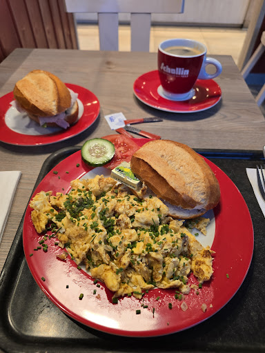 Read moreSuper Bäckerei mit einem großen Angebot leckerer Sachen :-) So ein Café hat in unserer Gegend wirklich gefehlt und es wird gut angenommen. Der Außenbereich ist ausbaufähig, ebenso die einzige, angeblich behindertengerechte Toilette. Das fängt schon mit dem Öffnen der Tür an: Die Klinke ist zwar tief angebracht, aber die Tür sauschwer und nach außen zu öffnen. Warum keine Schiebetür? Der Platz wäre da! Innen ist das Waschbecken nicht höhenverstellbar, der Seifenspender in Augenhöhe eines stehenden Benutzers angebracht (!) und der Handfön gegenüber in eine winzige Ecke gequetscht. Die Benutzung ist z. B. für Rollstuhlfahrer m. E. nicht möglich. Der Haltegriff an der Toilette verfügt über keinen Klorollenhalter, also steht das Papier auf einem Mauervorsprung und ist somit für niemanden zu erreichen! Hier muss dringend nachjustiert werden! Nachdenken sollte man auch über die üblichen winzigen Bäckereitabletts, auf denen zwei große Kaffeetassen mit den hübschen aber unnützen riesigen Untertellern keinen Platz haben, auch keine Tasse plus Frühstücksteller. Also läuft man immer mehrfach! Außerdem wird auf dem Bildschirm über der Café Bar zwar die Frühstückskarte gezeigt, aber keine Karte über Eierspeisen. Hierzu wird auf eine Speisekarte verwiesen, die nirgends ausliegt! Statt dessen wird auf dem 2. Bildschirm irgendein Werbefilm gezeigt! Wer denkt sich sowas aus :-)? Auch hier bitte...
