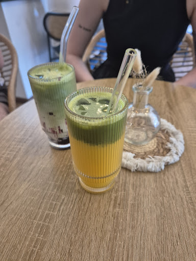 Ortam sessiz ve sakin, küçük ve keyifli bir mekan. Kahve içip oturmak için hoş bir ortam. Menü oldukça zengin, fiyatlar makul. Iced Karamel Latte, Strawberry Matcha Latte ve Iced Latte sipariş ettik ve beğendik. Hamborn Rathaus durağına yürüyerek sadece bir dakika mesafede, ulaşımı çok kolay.