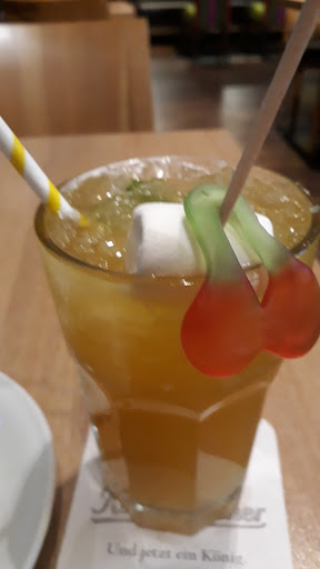 Da die Location genau neben einem Kino stand, sind wir danach erstmal in den neuen Fast ans Furios Film gegangen. Nach dem Film entschieden wir uns eine spätere Vorstellung zu sehen. Dabei handelte es sich um The Evil Dead Rise. Da wir noch eine Menge Zeit bis zum Start hatten, gingen wir nochmal in das selbe Restaurant um zu Abend zu essen. Wir wurden wieder nett begrüßt und gut bedient. Wir bestellten zunächst trinken, dabei handelte es sich um einen Jim Beam (4CL für 4,90€) und einen Italian Colada (Bacardi Rum, Amaretto, Cream of Coconut, Sahne, Ananassaft) (7,70€). Beides sieht man auf dem 2. Bild, den Italian Colada im Vordergrund und den Jim Beam im Hintergrund. Beides kam gut gekühlt bei uns an und blieb auch bis nach unserem Essen noch gekühlt. Zu Essen bestellten wir eine Lasagne Bolognese (10,40€) und eine Pizza Krabben (10,90€). Das Essen wurde schnell serviert. Die Lasagne mundete sehr gut und sättigte.