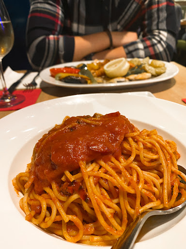 Großröumiger Italiener direkt am Ostausgang des Duisburger Hauptbahnhofes, neben Taxenstand und Busbahnhof - dementsprechend geht es dort recht geschäftig-laut zu. Das Lokal selbst ist direkt als Italiener erkennbar, Ambiente eigentlich schön, die Tisch-Zusammenstellung halt “optimiert”, Ausstattung schön gemischt, sowie ein separater oberer Bereich mit einem Gesamtüberblick über den Rest des Lokals.