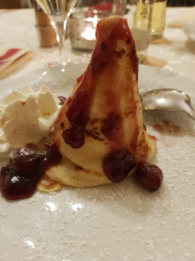 Pretty mediocre food: acceptable quality but three different dishes which we ordered were weird and not tasty at all. For example, goulash with herbs which make it tastes like a cough syrup, or pork medalions with cherry added to the sauce a lot making it so sour and sweet at the same time that you hardly can eat it. When we came in we were told that bank cards were welcome, but later it turned out that terminal did not work and only cash was possible, which was kind of a...
