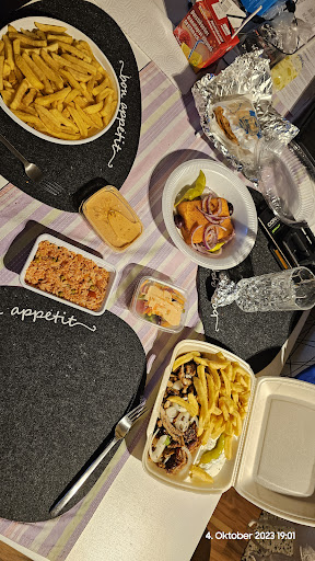 Neueröffnung, da muss ich hin. War schon lange nicht mehr auswärts essen. Mitgenommen habe ich meine beiden Nachbarn. Von innen macht der Grill einen gepflegten, sauberen Eindruck mit schönem Mobiliar. Der Besitzer ist sehr freundlich und macht sich sofort an die Arbeit unsere Bestellung zeitnah zu servieren. Ich hatte mir eine Gyros Tasche bestellt, in der Hoffnung es ist eine kleine Mahlzeit, weil ich nicht so viel Hunger hatte. Aber sie war riesig, sehr lecker mit saftigem Fleisch. Habe sie nicht geschafft. Meine Nachbarin ass ein Röstzwiebelschnitzel. Ebenfalls sehr lecker mit zartem Fleisch. Mein Nachbar hatte sich für ein überbackenes Bauernschnitzel entschieden und war hellauf begeistert, so sehr begeistert, dass er sich einen Löffel hat geben lassen, um die restliche Sosse noch essen können. Fazit: Preis/Leistungsverhältnis stimmt. Tolle freundliche Gastgeber, wir werden auf jeden Fall bald wieder...