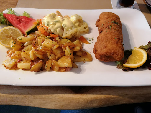 Read moreMeine Eltern hatten mich und meinen Freund 26.12.22 zum Essen eingeladen. Der Tisch war für 4 Personen reserviert, die Karte war eine abgespackte Weihnachtskarte von der üblichen Karte eine Dina A4 Seite auf beiden Seiten bedruckt, 3 Gang Menü bestehend aus Vorspeise (Salat und Suppe), Hauptgang den man aus der Karte wählen konnte und den Dessert (Weihnachtstraum). Wir hatten 3x Cola Zero und ein Bier bestellt da fehlt der Geschmack und die Kohlensäure (die Getränke schmeckten Schall) haben uns erstmal nix draus gemacht, die Salate kamen und meine Mutter bekam einen Salat ohne Dressing und bestehend aus braunen Strümpfen der ohne bestanden wieder zurück und durch einen neuen ausgetauscht wurde etwas später folgte die Hühnersuppe die Lecker war. Meine Mutter bekam ein Zigeuner Schnitzel mit Pommes; Ich: Rumpsteak dazu Folienkartoffel mit Sour Creme und Kräuterbutter. Mein Freund und mein Vater Teilten sich eine 2 Personen Platte bestehen aus 2 Rindersteak; 2 Schweinesteak; 2 Putensteak und 2 Cordon bleu und Pommes. Die Zigeuner Soße war undefinierbar, bei allen Personen die Pommes hatten; diese waren nicht im Ansatz kross und Salz fehlte komplett! Mein Steak war Blutig hätte es lieber Medium gehabt (man fragte auch nicht wie ich es gerne gegart hätte!) In meiner Folienkartoffel war Sand, die Cordon bleu waren Fleisch Kroketten (ein gerolltes Cordon bleu) mit Schinken und Käse, die Steaks auf der Platte waren lecker; es folgte darauf der "Wintertraum" bestehend aus einem Klecks Joghurt gemischt mit Spekulatius Keksen und obendrauf Keks krümmel, probiert - schmeckte überhaupt nicht. Wo wir wirklich entsetzt waren, 130€ für 4 Personen, wo leider nix stimmte; leider auch...