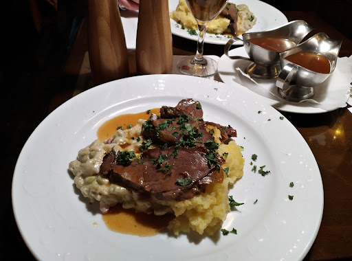 A great "local watering hole", in the best sense of the words. Regulars come there to play cards, tradefolk come here with their business partners to have relaxed dinner after done-deals, tourists come to eat genuine German cuisine, and the staff keeps their humor even in busy hours. It is foremost a bar, but it is impressive what comes out of that small kitchen.