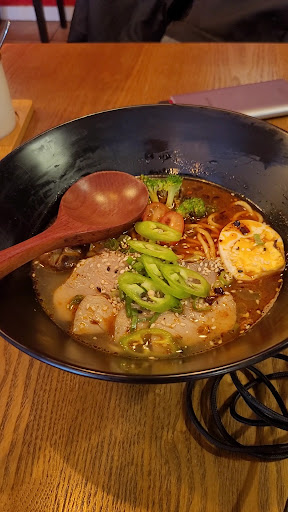 Read moreIch war schon zweimal in diesem Restaurant und beide Male begeistert! Das Essen ist nicht nur lecker und frisch, sondern auch authentisch. Besonders empfehlenswert ist der Reis mit Tomaten Rührei sowieso das vegetarische Ramen. Die Guotie und Frühlingsrollen waren ebenfalls sehr lecker ☺️ Die Auswahl an Bubbles Tea ist groß, es ist für jeden Geschmack etwas dabei. Außerdem kann man den Tee an den Geschmack anpassen und bei den meisten Getränken Süße, Eis und Größe auswählen. Beide Mal mussten wir nicht warten und bekamen direkt einen Platz. Das Essen kam schnell und der Service war immer super. Die nette Dame konnte mich beim Bubble Tea gut beraten und war ansonsten auch sehr freundlich und aufmerksam Die Bedienung beim ersten Besuch war auch äußerst freundlich...
