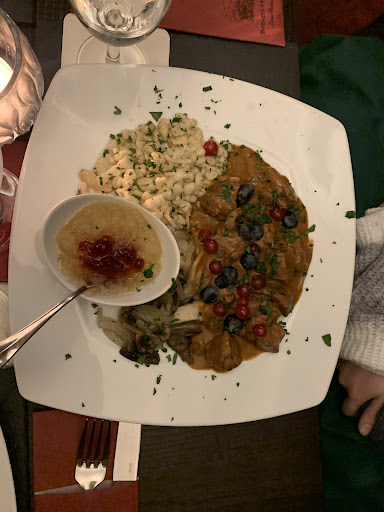 Damit war es aber nicht getan, denn kurz danach tauchte der Chef persönlich mit zwei Tellern Sauerbraten auf dem Arm auf. Nicht, um diese zu servieren, sondern um seine Gäste zu belehren. Er sagte bei dem ersten Sauerbraten würde er ja zustimmen, dass er angebraten wäre, aber der zweite wäre ja wohl absolut in Ordnung. Wir erinnern uns, laut Kellner war auch der erste Sauerbraten schon in Ordnung. Den Hinweis von mehreren Personen, er solle doch mal an der Soße riechen und sie probieren quittierte er nur mit einem "Das haben ich, das ist halt ein Sauerbraten!", drehte sich um und verschwand, auch hier, ohne zu fragen ob er Ersatz bringen kann. Für dieses absolut unprofessionelle und schon fast peinliche Verhalten des Chefs selbst, gibt es direkt zwei Sterne Abzug, somit bleibt nur noch 1 von 5 übrig. Sorry, aber das geht absolut gar nicht! Der Kunde ist König, und selbst wenn er nicht recht hat, was er hier definitiv hatte, ist ein solches Verhalten weder gerechtfertigt, noch zu entschuldigen!