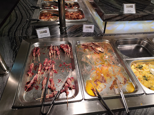 I have been to this restaurant and I can tell you the following things from different points of view: The food both during the day and in the evening is wonderful, the food is diverse, especially in the evening, where I will also attach pictures. During the day they only have a table full of diverse dishes, namely shrimp of several types prepared in vegetables, in oil and breaded, I will attach the first 4 pictures, and the rest where there are seafood and diverse raw meat and dessert are only available in the evening. In the evening, the desserts are diverse and good, there is melted white and milk chocolate, passion fruit, ice cream and from the machine, not just by the kg. At the moment, the price per person is €24.90 From the service point of view, we are very disappointed. They only approached us when they came to take our drink order, which is mandatory for eating, and already when it was time to pay. They didn't even smile or clean the table, the plates kept piling up, and they had nothing to do, what can I say about the fact that they sent the chef to bring us the food, but not the waiters. They are racists, we had a table next to us who were Germans, they smiled at them, joked, offered good humor and kindness, and they didn't speak any English to us, they don't even know English. We had to clear our table and carry our plates, otherwise, being 4 people, we wouldn't be able to see each other...