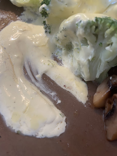 Ich mag das Essen da, aber ich mag es nicht wenn Haare im Essen sind. Wir essen immer wieder mal hier und fast jedes Mal fällt etwas vor. Das Essen ist ohne Frage sehr lecker. Dieses Mal wurde mir der Teller gebracht. Ein paar Pilze habe ich probiert und dann habe ich mich über Brokkoli gefreut mit der leckeren Soße. Ich dachte mir ich seh nicht richtig.. in der Soße war ein kurzes dickes dunkles Haar.. wie ein Barthaar oder so. Kann ja nicht von mir sein. Mein Mann hat sofort jemanden gerufen und die Situation geschildert. Besonders freundlich war die Reaktion jetzt nicht aber okay .. mein Teller wurde mitgekommen. Kurz danach kam der Mann wieder mit meinem Teller und die Soße verrührt und fragt wo denn das Haar ist?? Ich habe das Haar wieder rausgewühlt es und es gezeigt. Darauf hin sagte er das ist ja von den Pilzen. Habe das Haar rausgeholt und gezeigt dass es ein Haar ist!! Daraufhin sagte er nur: kann ja mal passieren. Keine Frage. Kann wirklich jeden mal passieren. Ist ja auch okay. Aber dann da alles verrühren und versuchen das zu vertuschen finde ich ist eine Frechheit. Wenn schonmal sowas passiert, sollte man ja auch wissen wie man vernünftig in dieser Situation umgeht, sodass der Kunde auch gerne wieder kommen möchte. Schade. Wirklich schade. Danach ist ja das Fleisch natürlich schon abgekühlt gewesen. Brokkoli und Pilze waren heiß. Aber das ist ja wohl eigentlich logisch dass das andere dann auch wieder heiß sein soll. Was soll’s. Bei dem unfreundlichen Menschen hat man dann auch keine Lust mehr was zu sagen um sich selbst nicht noch mehr die Laune...