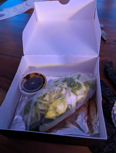 Bei den FrühlingsrollEN (warum der Plural?) handelt es sich um EINE Butterpäckchen-große Rolle, lediglich gefüllt mit Salat und einem Hauch Glasnudeln. Ein sehr salatlastiger, geschmackloser Witz. Die 3 EUR kann man sich sparen und in was anderes investieren, z.B. ein Kochbuch.