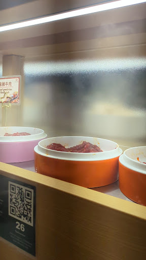 Read moreWir waren zu viert dort. Running Hot Pot wurde durch eine Instagram Werbung vorgeschlagen. Daher sind wir hingefahren. Die Parkmöglichkeiten sind echt teuer und sehr gering. Die Mitarbeiter sind recht freundlich. Wir haben alle eine andere Brühe ausgewählt, unser Geschmack war es nicht. Uns wurde gesagt, dass leicht scharf nicht scharf wäre, jedoch war die Brühe sehr scharf obwohl ich an Schärfe sehr gewöhnt bin als Südländerin. Preis Leistungsverhältnis passt definitiv nicht. Was uns an Zutaten gefehlt hat sind Gemüse Sorten. Bei unserem Besuch gab es nur an Gemüse 2 Kartoffel Sorten und Pilz Sorten und etwas Porree und Grün. Was gefehlt hat, bsp. Tomaten, Karotten, Lauch, Zucchini usw. Also die Auswahl ist sehr gering, dafür das es ein Hot Pot werden soll. Die Nudel Auswahl war auch sehr mangelhaft, 2 Glasnudel Sorten und 2 mit Gemüse und 1 klassische Variante. Viel zu wenig! Man bräuchte schon 3 klassische zur Auswahl meiner Meinung nach. Die Beschilderungen der Waren auf dem Band waren ebenfalls sehr durcheinander und unübersichtlich. Uns ist ebenfalls aufgefallen, dass es gar kein Hähnchenfleisch gab, was gefehlt hat. Die Brühe war sehr stark gewürzt und scharf, dafür aber sehr ungesalzen. Die Brühe so alleine kann man leider gar nicht trinken. Zudem ist es sehr schade, dass man nur 2 Stunden bekommt zum Essen sobald man die erste Bestellung abgeschickt hat. Dadurch das man sich in der Brühe sein Essen selber zusammen stellen und kochen muss, reicht die Zeit für ein Dessert nicht so richtig aus, da man überfordert ist und nicht so schnell aufgefüllt wird auf dem Band. Und es fehlen immer wieder passende Zutaten zu der Brühe. Dennoch kann ich sagen, dass im Großen und Ganzen die Ware auf dem Band frisch war. Ich hatte nicht das Gefühl, dass es vom Vortag ist. Jedoch sind paar Sachen definitiv abgepackte Sachen. Eins muss ich noch anmerken, durch die Brühe haben 3 von uns Magen Beschwerden bekommen und wir mussten auf dem Rückweg auf der Tankstelle halt machen. Cool ist es, dass man alles kostenfrei trinken darf. Die Obst Auswahl ist auch sehr mager nur 3 Sorten! Für den Preis würden wir noch mehr dorthin gehen, allein schon wegen den Magenschmerzen! Fazit: kann man einmal im leben als Erfahrung machen, sehr teuer für die Qualitativen Verhältnisse. Kann zu Magenbeschwerden führen. Service dafür top und Ambiente und Sauberkeit ebenfalls top. Achtung: Das Fleisch auf dem Band ist nicht...