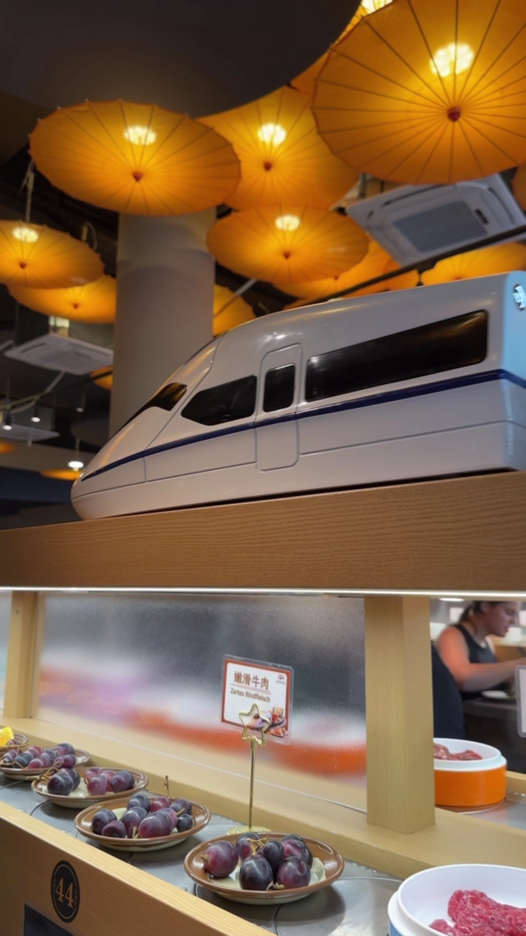 Read moreMeine Partnerin und ich haben das Restaurant gestern besucht. Wir hatten Lust auf Hotpot und neben den anderen Alternativen in Düsseldorf, wurde uns vor allem dieses Restaurant auf Social Media oft empfohlen. Das Lokal ist sehr nah gelegen am Düsseldorf Hbf, weshalb es relativ leicht zu erreichen ist. Der erste Eindruck war erstmal sehr positiv, es wirkte alles sehr aufgeräumt und sauber. Negativ aufgefallen ist mir hier zum einen, dass man es mit mehr als 2 Personen wohl schwer hat, vernünftig an einem Tisch zu sitzen, was aber denke ich auch dem Konzept des „Zuges“ und Fließband geschuldet sei. Zum anderen ist aufgefallen, dass die Stühle doch sehr niedrig verglichen zu der Höhe des Tisches waren, was es schwierig machte, gemütlich zu sitzen, und die verschiedenen Zutaten vom Fließband zu nehmen. Unsere Brühen kamen sehr schnell an und wurden mit dem „Zug“ zu uns gebracht. Um die Tische entlang, gab es ein Fließband von dem man sich alle möglichen Zutaten frei wählen konnte. Da wäre schon der nächste, und auch wichtigste Negativpunkt, der uns aufgefallen ist. Wenn man bedenkt, dass man hier 36€ ca pro Person für ein All You Can Eat bezahlt, kann man schon eine gewisse Auswahl und Qualität des Essens erwarten, was bei uns leider gar nicht der Fall war. NUR typisches Tiefkühl-Scheibenfleisch, günstiges Gemüse, wie Pilze, oder Kohl und Garnelen, sowie andere Zutaten, die für mich überhaupt keinen Anschein von Qualität erweckten. Vielleicht hatten wir gestern etwas Ünglück, aber die Auswahl an Zutaten war leider auch ein Trauerspiel. An zwei Händen abzählbar… Für 2 Personen haben wir dann dort knapp 80€ gelassen. Klar, kann man damit argumentieren, dass man eher für die Erfahrung hier bezahlt. Trotz alldem, grenzte das für mich gestern schon an Abzocke, ich war wirklich enttäuscht. Für uns war es eine „Einmal und Niewieder“ Erfahrung. Kann ich leider nicht empfehlen, wenn man nach einer ernsthaften Hotpot...