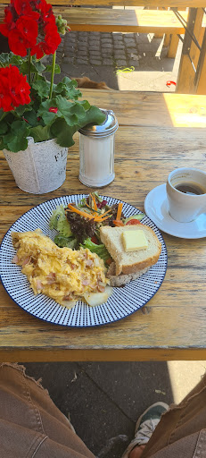 Read moreAbsolutely fantastic Sunday Brunch place. My husband and I went with our chihuahua dog and with our 1 year old baby and the service was excellent. The menue was big with lots of Sunday extras. The dog got a boiled egg. We has the chicken breakfast (lots of different chicken meats, lovely bread basket and butter, scrambled egg), the farmers omlette, and the pancake with cherries. I am quite picky with scrambled eggs (cannot stand liquid / uncooked bits or soggy eggs) but these were excellent. The portions were generous and large- we could not finish. The place was buzzing full without any empty places however the staff did not appear stressed and everyone was very friendly (extra wishes like milk with the tea, well done scrambled egg, egg for dog,...) were all fullfilled. We would happily come again. The location is also excellent with a lovely park with kids playgrounds and dog play areas nearby for a...