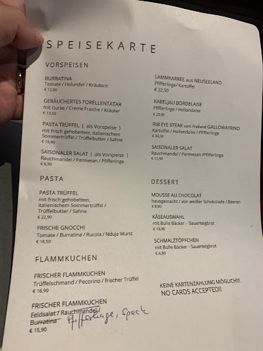 Really nice place to have a decent meal in Düssdorf. The place however is not big, so it can feel like packed. The staff is super friendly and attentive. There is a waiting time around 20-30 mins, but you can enjoy some wine (and bread) meanwhile. They don't have much selection on their menu. The food is really good, but I wouldn't say excellent. (Pasta was a bit undercooked, but not a deal-breaker). The wine is good, and the waitress was super attentive to refill the glasses. The prices are bit higher (dishes from €16 upwards), but it's a upper scale restaurant anyway. However, I wouldn't recommend this place to larger groups due to...