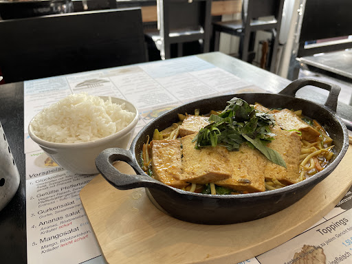 When we walked in we were told they only accept cash. And that probably the only negative i have to say about the place. They had a fully vegan menu card and one with mixed options. All in german, but easy enough to translate. We ordered 2 cold noodle bowls one with shrimp one with chicken. Both really good, you could smell them preparing the food. We didn't finish our meal (partially due to eating so much during the day and partly because it was such a warm day) so we had the remainder to go. Very sweet service, and very good food. Would definitely...