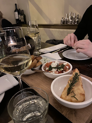 Langversion: Das Restaurant macht einen recht gemütlichen Eindruck; als wir uns setzten kam auch zügig der erste Kellner. Wir wurden mit Witz und Charme empfangen, der sich aber relativ schnell als aufgesetzt und einfach zu viel herausstellte. Wir sollen doch alle von der Tafel bestellen wurde zunächst gewitzelt (die teuersten Gerichte). Dann hatten wir uns alle einen Aperitif bestellt, was lecker zubereitet wurde, vor allem der abgewandelte Aperol Sprizz mit beeriger Komponente und hier konnte der Service punkten, denn ich hatte meinen "weniger süß" bestellt und das wurde auch freundlich und perfekt umgesetzt.