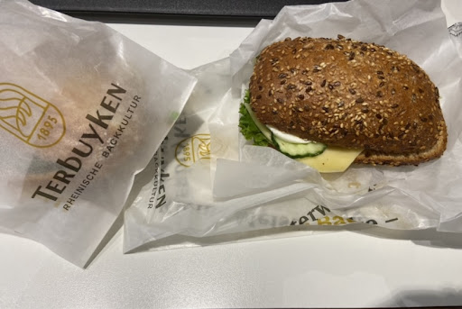 Read moreDer Standort der Bäckerei Terbuken am Flughafen Düsseldorf ist wirklich sehr ansprechend. Die Waren sind wunderschön in der Vitrine präsentiert – jedes Gebäckstück sieht leckerer aus als das andere. Besonders die belegten Brötchen sind sehr vielfältig: mit Käse, Brie, Salami, Wurst, Ei, Rührei, Spiegelei – wirklich alles, was das Herz begehrt. Auch frische Brote, verschiedene Kaffeespezialitäten sowie Süßgebäck sind im Angebot. In dieser Hinsicht ist die Auswahl absolut top und für jeden Geschmack etwas dabei.