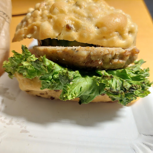 Das Brötchen war geschmacklich fad, nicht frisch und der Salat war mehr als unappetitlich. Die Teilchen sind häufig trocken und scheinen schon eine längere Zeit ausgestellt zu sein.