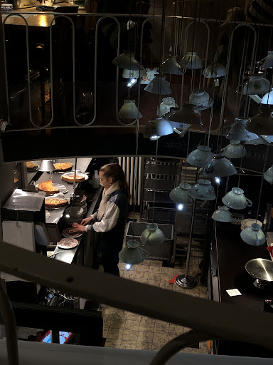 Read moreIch war jetzt drei Mal mit einer Freundin da. Sie bestand darauf, dem Café eine Chance zu geben, ich wurde drei Mal schwer enttäuscht. Oben sitzen war zweimal ein großer großer Fehler, da wird man nämlich grau, bevor mal eine Bedienung vorbeikommt. Beide Male bin ich heruntergestapft, wollte Kaffee nach oben bestellen nur um recht unfreundlich gesagt zu kriegen, dass man warten solle, bis jemand hoch kommt. Die Tische voller unabgeräumter Teller hätten einen schon warnen müssen, dass die Bedienungen nur alle Jubeljahre mal oben vorbeischaun. Unten sitzen war etwas besser. Kuchen ist ok, kriegt man aber besser und billiger in einer Bäckerei. Kaffee/Latte Macchiato Becher für den Preis doch sehr klein, wobei das ja heutzutage fast üblich ist. So schick die Einrichtung ist, so ungemütlich ist das Café trotzdem. Einmal aufgrund der Enge, dann aufgrund der hohen Gästezahl. Da es so eng ist, wird es schnell laut. Man fühlt sich eher in einer gedrängten Szenekneipe als in einem Café. Auch auf die Gefahr hin, mich unbeliebt zu machen, aber leider muss ich als Negativpunkt die vielen jungen Mütter samt Kleinkindern nennen, die alle drei Male da waren (scheint beliebt bei jungen Müttern zu sein?). Diese ließen ihre ca 2-5jährigen nämlich ungehindert herumrennen, schreien, stampfen und generell so laut spielen,wie Kindergartenkinder eben spielen. Das Café scheint nichts dagegen zu haben. Wenn das Hüftgold ein Kinderspielplatz sein will, bitte. Ich für meinen Teile gehe nicht mit Freunden Kuchen essen, nur um alle 10 Sekunden zu fragen "Was hast du gesagt?", weil ein spitzer Kinderschrei, ein Gestapfe oder kleinkindlicher Wutausbruch wieder einmal alles übertönt hat.