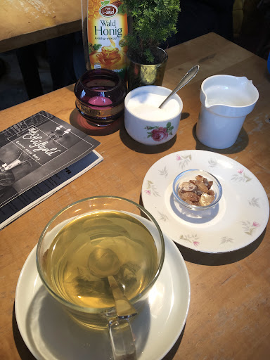 Read moreAufgrund der äußerst positiven Bewertungen waren wir am Sonntag zu dritt zum Brunch dort verabredet. Vorheriges Reservieren war nicht möglich. Ich war deshalb schon etwas eher da, um sicherzugehen, das wir einen Platz bekommen. Der freundliche Kellner sah oben nach, es wäre alles voll. Ich habe dann selbst eine nette jüngere Frau gefragt, ob wir uns noch dazusetzen dürften. - Kein Problem. Es war sehr beengt, die Tische mit dem dicken mittleren Pfosten, an dem man sich permanent die Knie stößt, ließen ein bequemes Sitzen nicht zu. Und da ständig die Türe aufging, zog es wie Hechtsuppe. Wir bestellten drei unterschiedliche Doppeldecker. Meiner mit Lachs für immerhin 4,40€ sah aus wie ein zu wenig getoastetes Brot aus einer Brotbox eines Schülers, nur farb- und liebloser. Doppeldecker hieß nicht doppelte Menge, sondern lediglich, dass man den Belag nicht sah. Kein grünes Blatt, kein Scheibchen Tomate, keine Radieschenscheibe, kein Rucolablatt. Der Chai Latte war lecker, aber nur ein kleines Glas (gab's nur als Kinderversion), dafür war auch dafür der Preis relativ hoch. Ich hatte zuhause bereits die Speisekarte gegoogelt und wollte ursprünglich noch etwas anderes probieren, habe es mir dann anders überlegt. Meine Freundin bestellte noch 2 Stücke Kuchen. Der sah lecker aus, schmeckte aber enttäuschend. Sowohl der Himbeer-Mohn als auch der Käse-Brownie waren viel zu trocken. Aufgrund des beengten Platzes und des hohen Geräuschpegels haben wir dann unser Treffen verfrüht abgebrochen. Da ich das Café Hüftgold vorgeschlagen hatte statt eines anderen in der Altstadt, war meine Enttäuschung groß. Wir werden definitiv nicht mehr wiederkommen. Macht für den Besitzer aber keinen Unterschied, die Besucher...