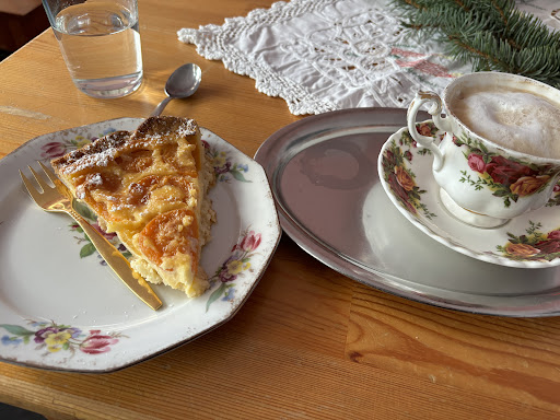 Wir waren heute zum ersten und auch zum letzten Mal in diesem Café. Wir haben uns tatsächlich aufgrund der guten Empfehlungen extra aufgemacht, weil wir eine gute Auswahl an Kuchen erwartet haben. In der Karte sind ziemlich viele Kuchen Varianten aufgezählt. Auf unsere Nachfrage wurde uns mitgeteilt, dass alles was in der Vitrine steht vorhanden sei. Das waren vier Sorten Kuchen und leider keine Torte dabei. Wir haben dann aus dem vorhandenen etwas ausgewählt, weswegen wir aber leider nicht gekommen sind. Nachdem dann weitere Kunden auftauchten, die offensichtlich im Café bekannt waren, zauberte man diverse Torten aus dem Kühlschrank und aus der Küche wurde auch frischer Kuchen in die Vitrine gestellt. Auf meine Bemerkung, dass das sehr schade sei, dass man uns, trotz Nachfrage, diese Optionen nicht präsentiert habe, bekam ich vom Inhaber auch noch eine ziemlich ranzige Antwort. Der Kuchen war okay, der Service leider...