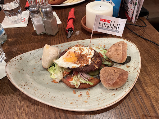 Service und Personal: Das Personal im Extrablatt ist durchweg sehr freundlich und aufmerksam. Die Kellnerinnen sind stets bemüht, den Gästen den Aufenthalt so angenehm wie möglich zu gestalten. Sie fragen regelmäßig nach, ob alles in Ordnung ist, und sind stets freundlich und zuvorkommend. Besonders hervorzuheben ist die nette und offene Art der Kellnerinnen, die den Service zu einem positiven Erlebnis machen. Man fühlt sich dort gut aufgehoben und willkommen.