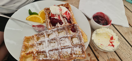 Read moreEigentlich ist dieser Ort so schön -gerade im Sommer bei untergehender Sonne, ABER wir wurden zu allererst mit dem Auto über Google Maps zur Parkmöglichkeit geleitet, die 800m entfernt war, was uns, die selbstverschuldet eh schon ein paar Minuten zu spät waren, dann natürlich viel verspäteter ankommen ließ. Denn dadurch liefen wir - Familie mit einer „Omi“- auch erst mal eine Zeit. Kamen dann um kurz vor 20 Uhr an um zu erfahren, dass die Küche um 19:50 schließt. NETTERWEISE durften wir uns noch etwas zu essen aussuchen, allerdings schon mit der vor uns stehenden und ständig auf die Uhr blickenden Kellnerin, so dass wir alle extrem gestresst dort starteten. Direkt zur Aufklärung wurde uns gesagt, dass wir Getränke auch nur bis kurz vor 21 Uhr bekämen…. (Das habe ich ehrlich noch NIE irgend wo erlebt, immerhin hatten wir zu diesem Zeitpunkt ja noch nicht mal überhaupt ein Getränk bestellt!!) Und das, obwohl ich vorher auf der Canoo.de -Seite gesehen hatte, dass hier bis 22 Uhr geöffnet ist, darüber auch reserviert hatte und nirgends einen Hinweis auf diese zeitliche Begrenzungen fand. Nie im Leben hätte ich dann „so spät“ reserviert. Aber ok. Wir machten das alles mit, erklärten Kindern, dass sie leider KEINE Nachspeise bekämen und wurden dann um 20:45 gefragt, ob wir noch ein LETZTES Getränk bestellen wollten. Aber die Höhe war dann, dass doch immer noch Gäste kamen….. und die DURFTEN Getränke bestellen und Kuchen essen. Unsere Kellnerin sagte dazu nur, dass sie halt schon abgerechnet hätte- AHA! Sorry, aber das geht für mich gar nicht! Ein striktes Regelsystem, das allerdings nur für einige Kunden gilt? Was ist das? Schade, für uns leider kein Ort, an dem wir eine entspannte Zeit verleben konnten. Zwei von uns sind Ärztinnen und wir haben den Abend damit verbracht zu überlegen, wie das Modell im Krankenhaus...