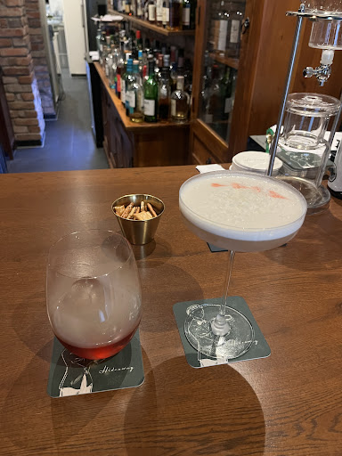 Read moreMan läuft erst mal nachts an der Tür vorbei, da nur ein unscheinbarer Dymo-Prägeband-Streifen am Briefkasten die Bar identifziert und sonst nichts. Hier ist der Name also Programm. Man muss dann klingeln, um Einlass zu erhalten. Unsere 4er-Gruppe hatte Glück und konnte an einem Tisch, der von abgeranzten Sitzbänken eingefasst war, mit dem strikten Hinweis der "Empfangsdame", dass wir um 22 Uhr wieder gehen müssten (sic!), Platz nehmen. Wir bestellten daher schnell entschlossen nach einem kurzen Überfliegen der Karte unsere Drinks, und hatte dann gute 25 Minuten Wartezeit, in der wir die ca 20 anderen sich leise unterhaltenden Gäste und den Barbetrieb beobachten konnten. Die Bar selbst gibt eigentlich nichts zum Betrachten her, da sie ein uninspirierter dunkelmoosgrauer Raum in asiatischer Strenge mit wenigen Lichtakzenten ist. Mindestens genauso leidenschaftslos, aber hochkonzentriert agierten die 3 Barkeeper beim Shaken, Strainen und Garnieren der Cocktails, ohne jemals zu den Gästen Blickkontakt herzustellen oder eine Konversation einzugehen. Aber vlt. waren es ja auch gar keine echten Barkeeper, sondern KI-gesteuerte Androiden, von denen ich neulich in der Computerwoche las. In Asien ist man uns Europäern diesbezüglich ja weit voraus... Die handwerklichen Abläufe waren jedenfalls hochprofessionell und die Mixergebnisse hervorragend! Als wir uns anschickten, eine zweite Auswahl zu treffen, wurden wir noch mal mit ernstem Blick darauf hingewiesen, dass wir um 22 Uhr zu gehen haben. Wir erwiderten, dass das natürlich kein Problem sei, wenn die Drinks nicht wieder fast 30 Minuten bräuchten... Also wenn man keinen geselligen Unterhaltungswert erwartet und kein Problem damit hat, dass es den Betreibern nicht um den Gast geht, und man einfach nur perfekte Longdrinks und Cocktails genießen will, sollte man da mal klingeln (falls man die Tür...