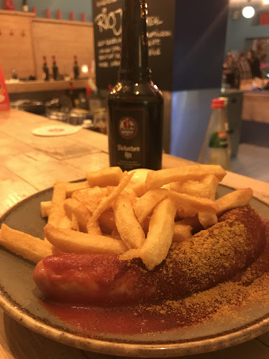 Read moreWenn man in NRW ist, muss man Currywurst essen. Gesagt und getan. Per Tripadvisor die bestbewertete Currywurst gesucht und angesteuert. Von außen nicht sehr einladend, sind ein paar Biertische auf dem Bürgersteig platziert und es ist nicht ganz klar, ob man hier bedient wird oder drinnen bestellt. Im Inneren war es dann recht voll, meist ein gutes Zeichen. Recht schnippisch wurde ich dann von der Dame hinter dem Tresen gefragt, ob ich mein Gericht mitnehmen oder hier essen möchte und dann darauf hingewiesen, mich doch bitte zu setzen. Habe mich für einen Tisch im Freien entschieden. Die Speisekarte ist übersichtlich, preislich in Ordnung und die Getränkeauswahl gut. Habe mich für Currywurst Spezial entschieden sowie eine Rhabarberschorle. Bis die Dame zur Bestellungsaufnahme kam, vergingen aber noch gute 10 Minuten. Das Getränk brauchte weitere 10 Minuten und 5 Minuten darauf kam die Currywurst mit Pommes (Pommes werden extra berechnet). Geschmacklich waren die Fritten in Ordnung, aber nichts besonderes. Die Currywurst (rote Wurst) war mit reichlich Soße (pikant) und Zwiebel garniert, ein Schuss Mayonnaise ergab Currywurst Rot/Weiß. Die Soße war tatsächlich pikant und schmeckte sehr gut. Der Rest war eben Currywurst und die Schorle mehr Wasser denn Saft. Anschließend wurde der Teller 10 Minuten nicht abgeräumt, die Dame stattete der "Terrasse" auch keinen Besuch mehr ab. Habe dann drinnen bezahlt und fühlte mich weder wahrgenommen noch besonders freundlich behandelt. Insgesamt hat mich die kühle Haltung der Mitarbeiter sowie die wenig einladende Atmosphäre nicht sehr überzeugt. Lediglich wegen der Soße würde ich daher nicht mehr hingehen und kann das Lokal nur...