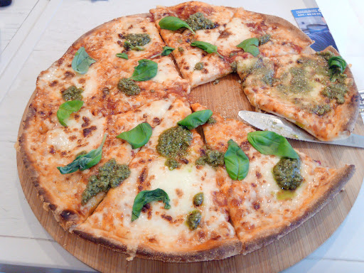 Read moreDas Lokal (vorher Hallo Pizza - Betreiber ist gleich geblieben) ist nach dem Umbau auf jeden Fall ein Hingucker. Zwar klein, aber okay. Das griechisch-mediterrane Flair schlägt sich in den Details der Einrichtung wider, und es ist hell und freundlich eingerichtet. Leider enttäuschte mich der Besuch aber in Bezug auf Hygiene und Geschmack vollkommen! Der Chef hat meine Bestellung aufgenommen. Eine Pizza Funghi zum Mitnehmen wurde geordet. Der Chef hat leider zunächst mit Fleischbuletten in der Hand herum gewedelt und hat keine Zange benutzt, bevor er mein (vegetarische) Pizza Funghi zubereitet hat. Darüber hätte man irgendwie noch hinwegsehen können, wenn der unerträgliche Fleischgeschmack der vegetarischen Pizza nicht gewesen wäre, der wohl vor allem dadurch zustande kommt, dass in dem rotierenden Ofen quasi alles zubereitet und warm gemacht wird. Absolutes no-go! Dass auf der Pizza dann auch zudem nur eine Handvoll geschnittene Champignons zu sehen waren, war dann wohl das kleiner Übel. Die Pizza ist nach einem Stück, weil ungenießbar in der Tonne gelandet.